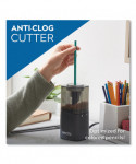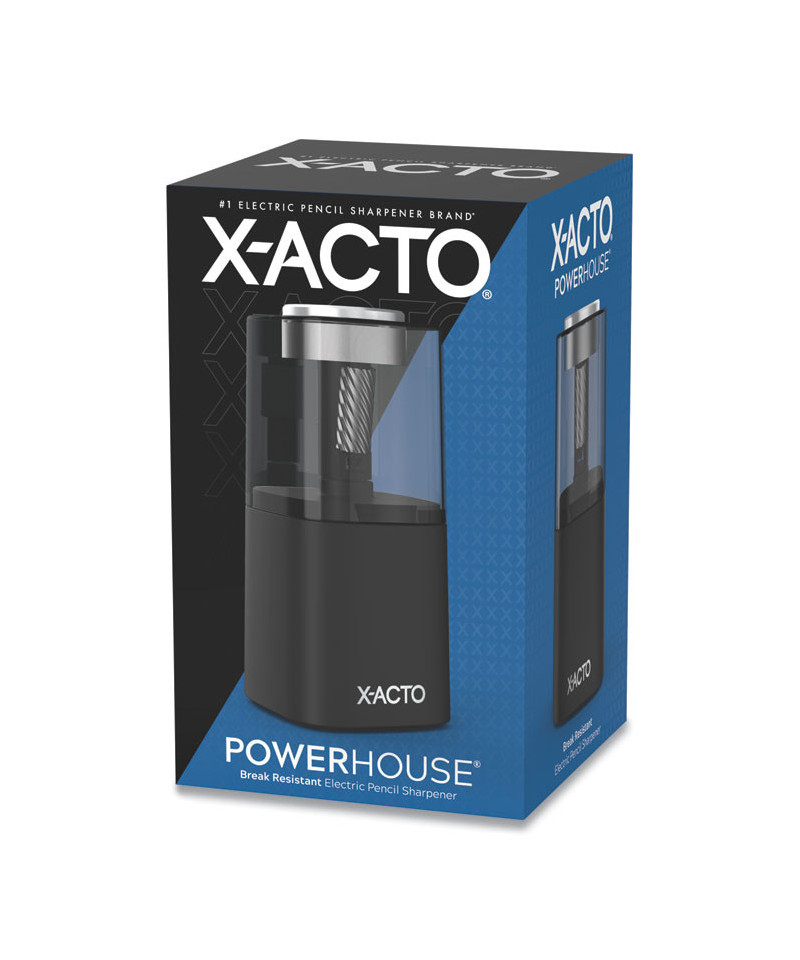 Spend less time sharpening and more time writing. Powerhouse® sharpeners feature Fly-Away Cutters that minimize sharpener-related lead breakage while preventing oversharpening, to consistently deliver precision tips with minimal frustration. Innovative, visible-cutter design and anti-clog gears makes it ideal for all pencil types, including artist-quality colored pencils. Slip-resistant bottom keeps the pencil sharpener steady when in use. SafeStart® electric motor locks the blades in place when the extra-large, easy-to-empty shavings bin is removed. Stay sharp with X-ACTO®!
