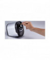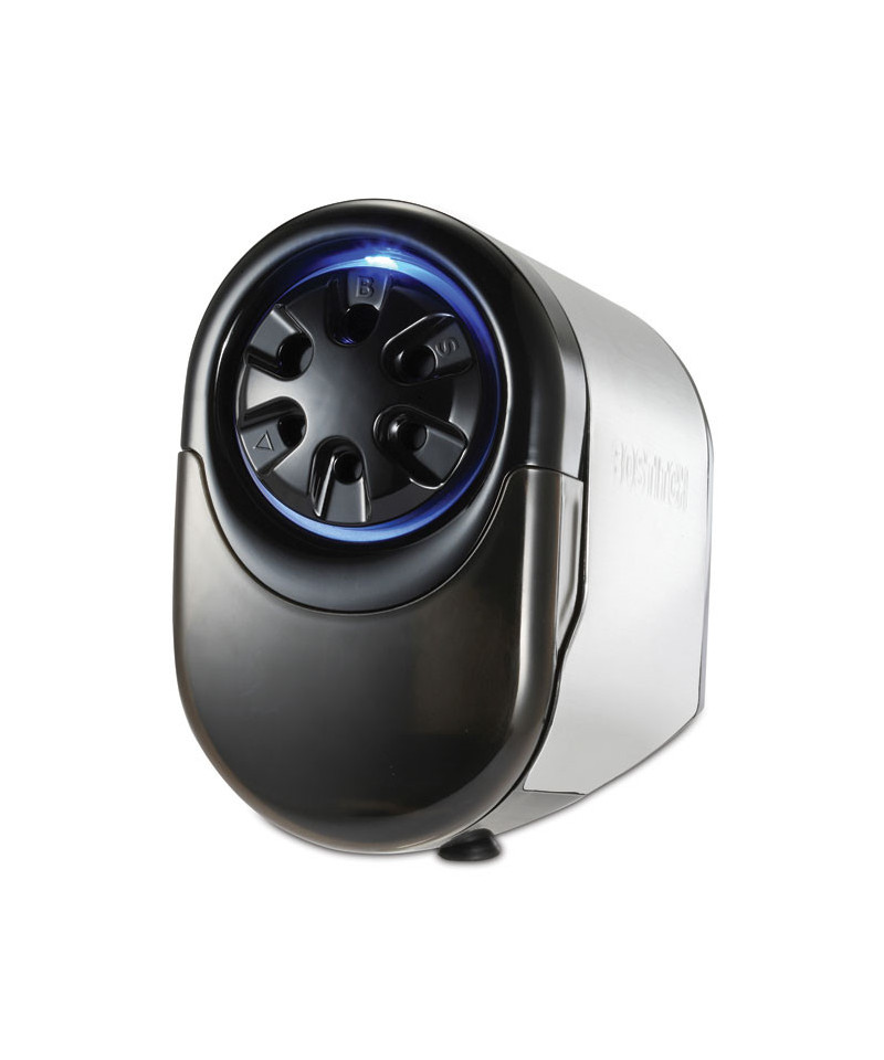 The QuietSharp Glow provides the ultimate blend of performance, safety, and style for the classroom or studio. To make each pencil last a little longer and reduce classroom disturbing noise, the SharpStop system automatically shuts the sharpener down once the pencil is completely sharp. Then the unique SharpGlow light will come on, creating a soft blue glow around the dial to provide a visual indicator to the student and the teacher, who may not be close by. Its 6-size selector dial is perfect for a variety of pencils. Whether your classroom is full of elementary school students using a jumbo pencil or a Ticonderoga Tri-Write; or older learners who use standard pencils, this electric pencil sharpener has got you covered! It is even colored pencil compatible. A lot of sharpeners make this claim but only we can back it up. Colored pencils have a bit of wax in them that can get caught up in the blade of any sharpener. But since this electric pencil sharpener has a blade that you can access, simply remove the blade and wipe clean. It's that easy! And for ease of use, the Tip Saver Technology prevents over sharpening, extending pencil life. Once a pencil is completely sharp, the blade cutters will pull back and no further sharpening can be done. The XHC cutter technology allows for 70% faster sharpening and 10x longer life. It is made with extra hardened steel and the blade is designed to be helical, allowing for a pointed tip every time in under four seconds. With the combination of a super duty motor and thermal overload protection, this electronic sharpener is completely protected from overheating. This means you can sharpen a lot of pencils without having to take a break in between. The operation is quiet with the durability to withstand strenuous classroom use. The giant shavings tray features our patented MagnaSafe tamper proof safety switch which shuts down the motor when the tray isn't attached. So, if the tray is removed, there's no way to get the motor to run. This makes it the standard for safety in a classroom environment with young children around. The unique curved shape and sleek brushed metal case offers class-leading style and classroom survivability. This sharpener is the perfect addition to any classroom! Have the peace of mind of knowing that if anything goes wrong, you know you can always trust Bostitch to get you back in business!
