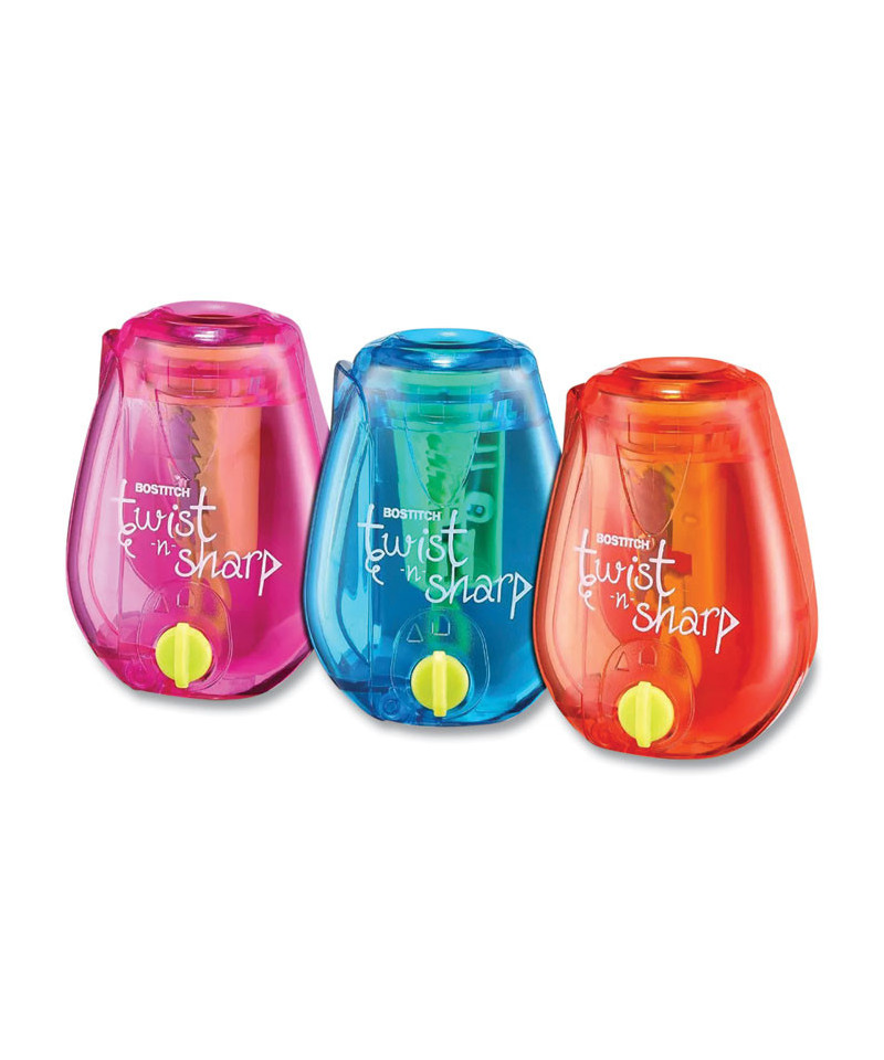 Twist-n-sharp two-hole pencil sharpener features ratchet technology in the sharpener for easy sharpening. The ratchet allows for faster sharpening without ever having to let go of the pencil. This technology is only offered on stitch premium office supplies. This sharpener also offers the convenience of two different sized holes so you can sharpen standard pencils as well as jumbo pencils! So even as your child transitions from learning pencils to standard pencils, your sharpener can remain the same! For products you can rely on, there's always Bostitch® Office!