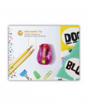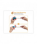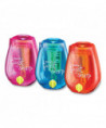 Two-hole pencil sharpener features ratchet technology in the sharpener for easy sharpening. The ratchet allows for faster sharpening without ever having to let go of the pencil.