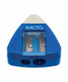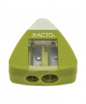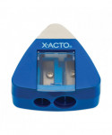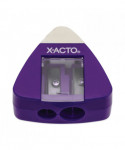 Conveniently sharpen your pencils and erase mistakes with the X-ACTO triangle manual pencil sharpener. With a built-in eraser, you'll be able to switch from sharpening to correcting in no time. The small, handheld pencil sharpener sharpens two different pencil sizes, while its portable and lightweight size makes it easy to carry in backpacks or tuck into desk drawers.