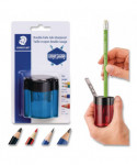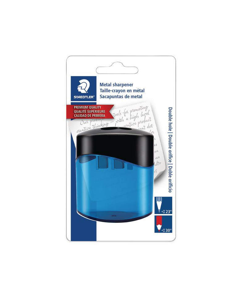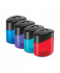 Available in different colors for a fun and personalized way to keep your pencils sharp. Offers a large and small hole to sharpen pencils of various sizes.