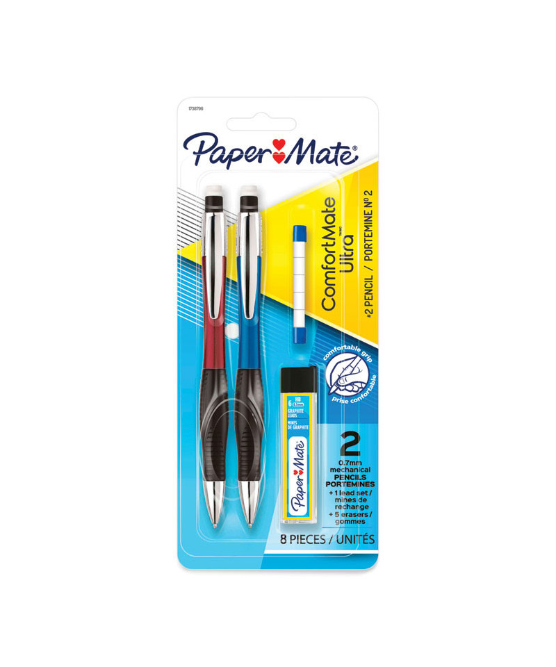 Starter set features a pencil with specially designed, comfortable soft grip. Sleek hourglass barrel is stylish and easy to control. This set provides a great, economical alternative to wood pencils.