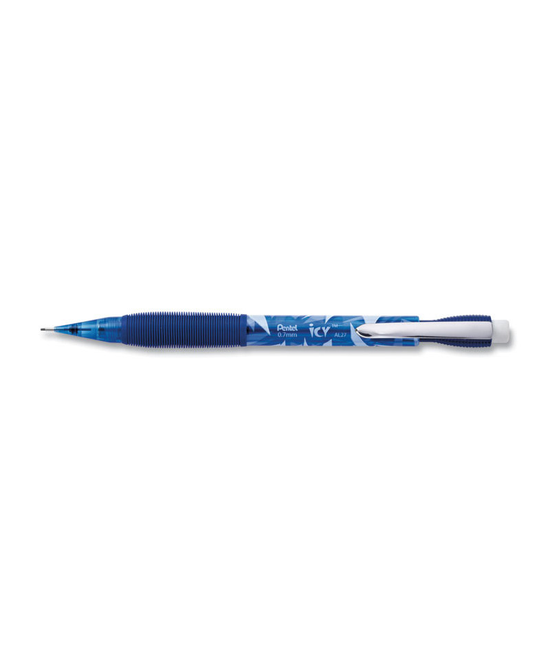 The Pentel® ICY® mechanical pencils come in a new, fresh design including cool color-tinted barrels. The unique, extra-soft latex-free grip helps reduce writing fatigue. Durable metal clip withstands repeated use. Each mechanical pencil is pre-loaded with Pentel® Super Hi-Polymer® HB lead, which never needs sharpening, is super strong and produces a clear dark line.