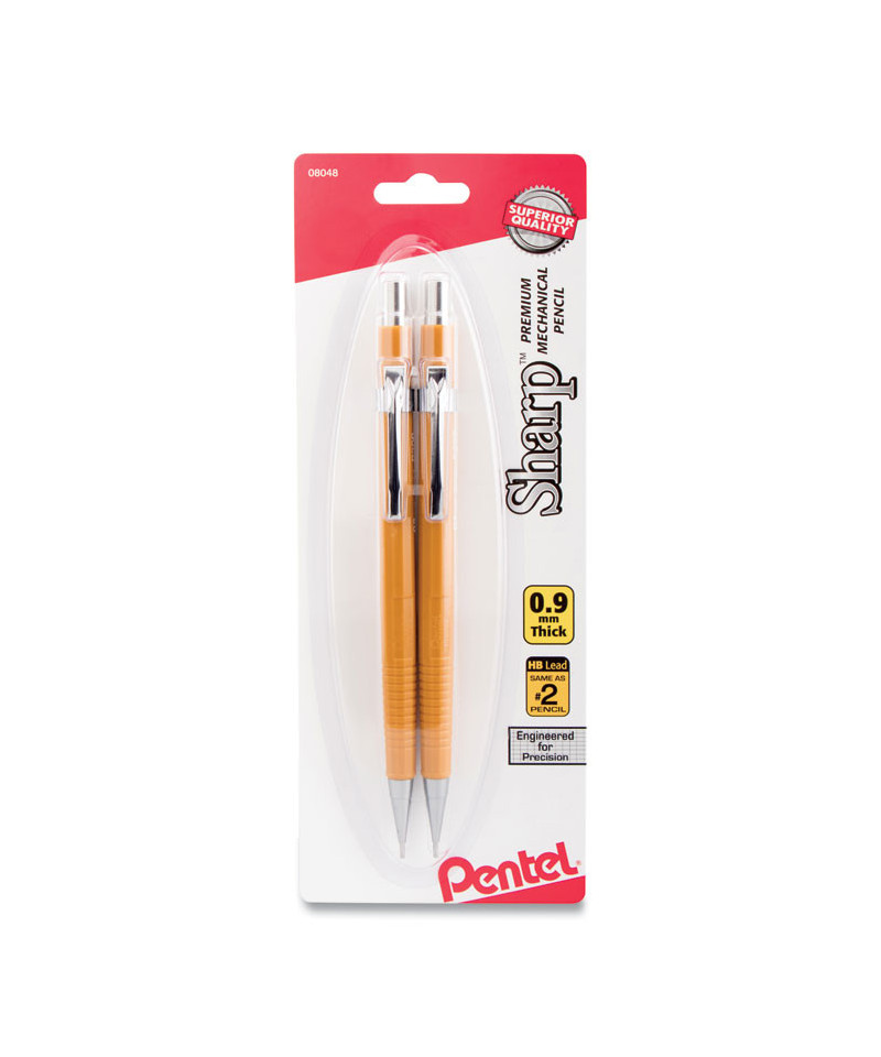 Sharp Mechanical Pencil, 0.9 mm, HB (Number2), Black Lead, Yellow Barrel, 2/Pack