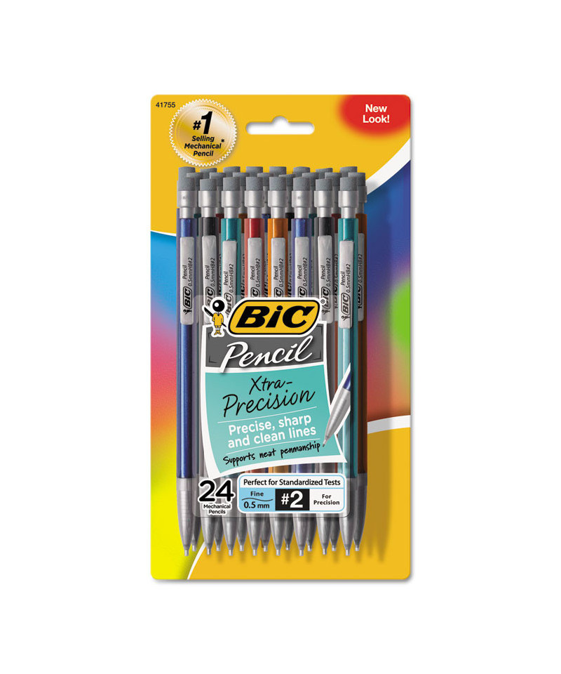 Ideal for detailed work or any time extra tidiness and accuracy are needed, the BIC Xtra-Precision Mechanical Pencil comes with fine 0.5 mm leads that lay down smoothly, do not smudge, and erase cleanly. The #2 lead advances easily with a simple click of the eraser and is perfect for standardized tests. Always sharp, ready, and accurate, these pencils eliminate the need to sharpen constantly, saving you time. The fun metallic barrel adds some color to your classroom, home, or office.