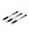 Rubber grip cushions fingers for maximum comfort and control. Retractable sleeve keeps lead safe and reduces breakage, keeping you writing longer. Soft eraser.
