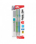 Pentel® Quick Click™ is the fast and convenient side-advance mechanical pencil. The quick side-advance button advances lead without interrupting your writing. Easy-to-use slide extends and retracts the long-lasting eraser. Latex-free eraser won't smudge, ghost or tear your paper. Fun clear barrel design with bright color accents. Latex-free grip for hours of comfortable writing.
