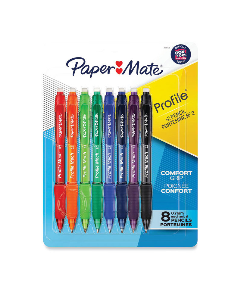 Paper Mate® Profile Mech® Mechanical Pencils combine the look and feel of a pen with the performance and versatility of a pencil, so you stay sharp during any writing task. They feature a comfortable grip that helps you keep writing until the job is done. These pencils contain 0.7 mm HB #2 pencil lead, making them great for school, home, or the office and perfect for standardized testing.