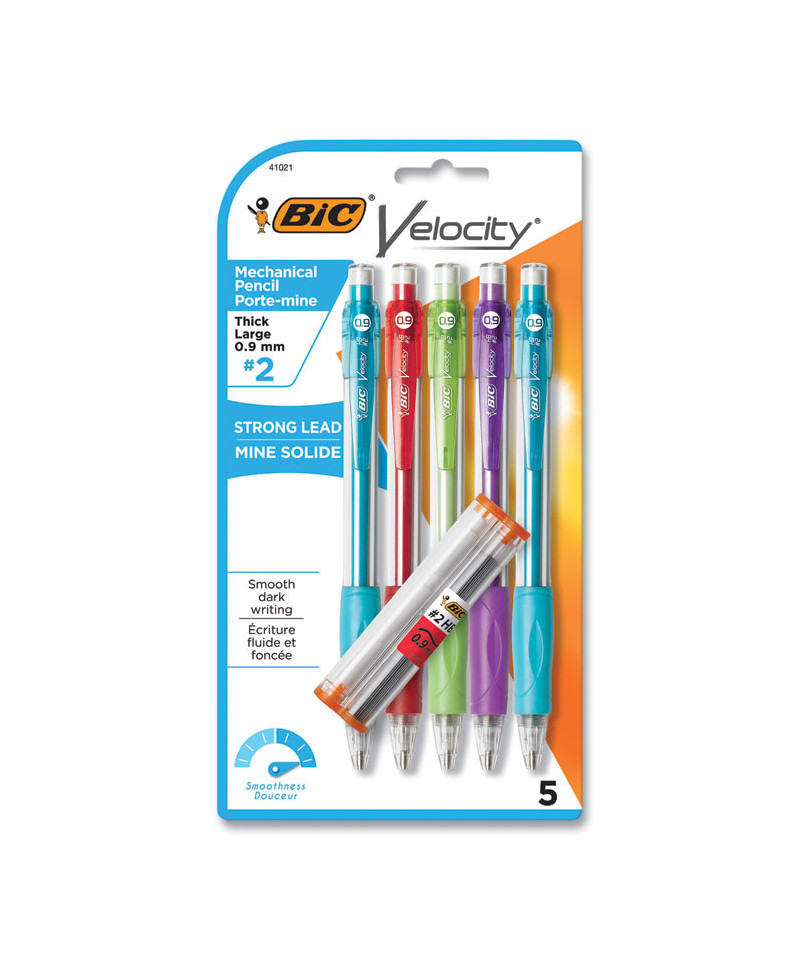 The BIC Velocity Original Mechanical Pencil offers smooth, dark writing that erases cleanly. This pencil comes with strong #2 lead that creates strikingly dark marks, perfect for standardized tests, and a soft grip that provides writing comfort and control. Outfitted with a durable eraser, these versatile pencils help you keep your tests, notes, and compositions tidy. Each pencil comes preloaded with three strong #2 leads and is refillable.
