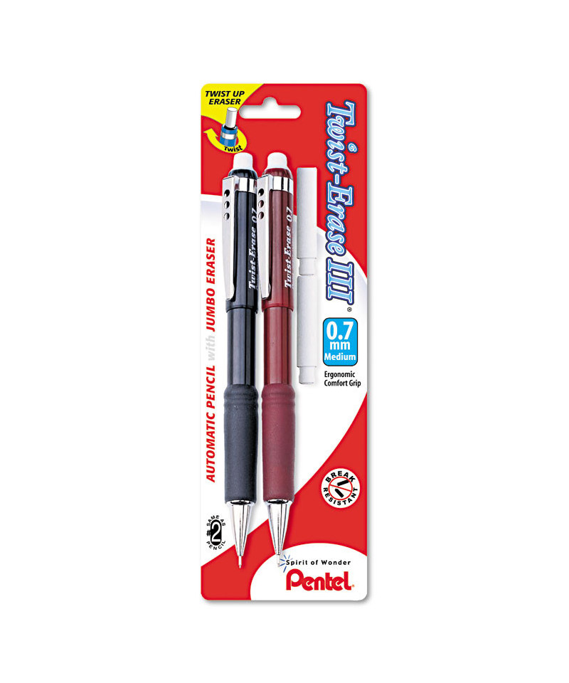 Twist-Erase III Mechanical Pencil, 0.7 mm, HB (Number2), Black Lead, Assorted Barrel Colors, 2/Pack