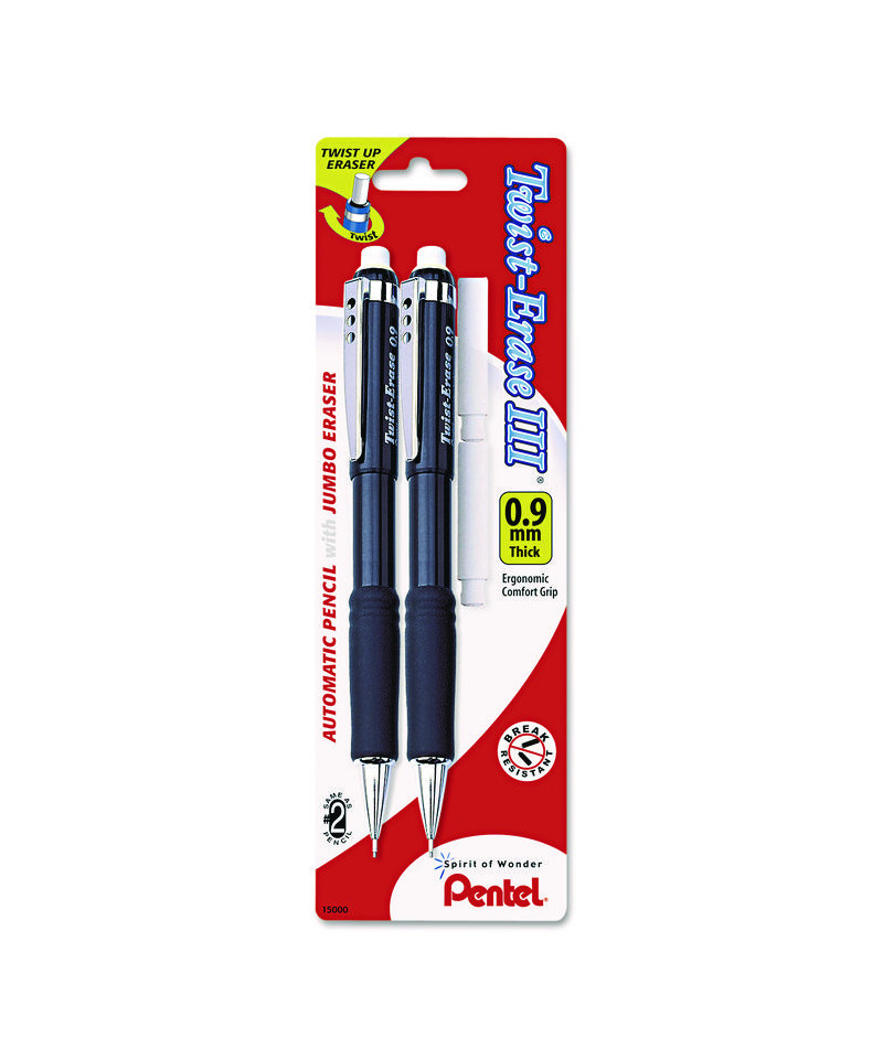 Twist-Erase III Mechanical Pencil, 0.9 mm, HB (Number2), Black Lead, Assorted Barrel Colors, 2/Pack