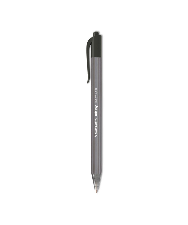 InkJoy 100 RT Ballpoint Pen, Retractable, Medium 1 mm, Black Ink, Smoke/Black Barrel, Dozen