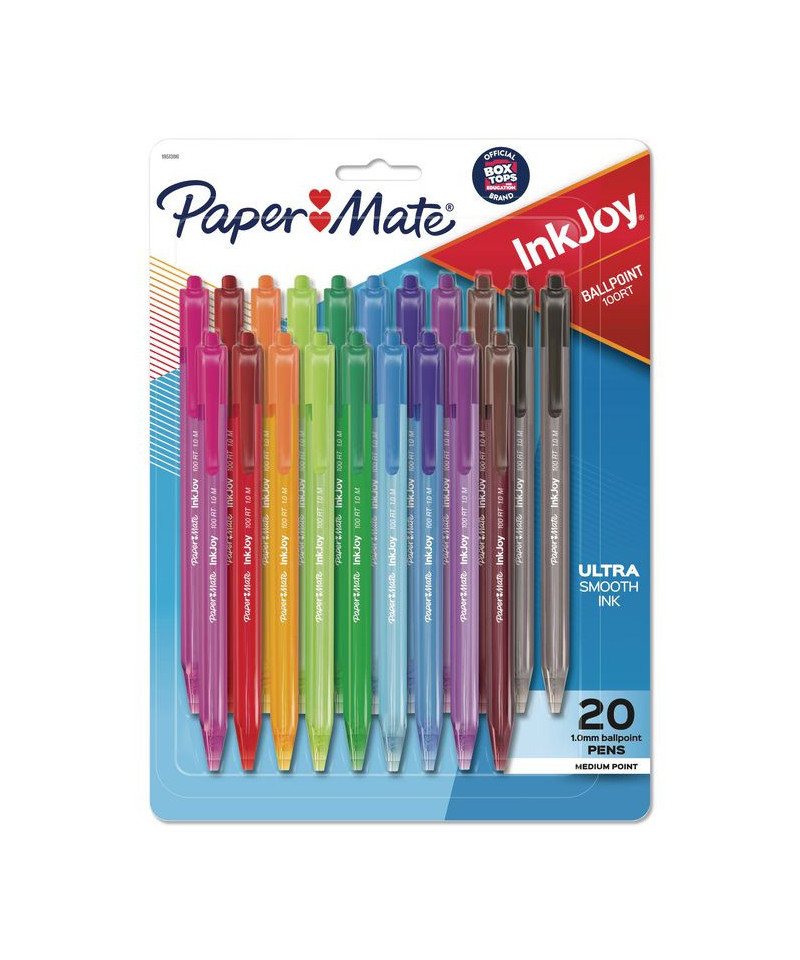 Spread joy with InkJoy and brighten up every page with ink that flows as freely as your thoughts. Paper Mate® InkJoy 100 RT Retractable Ballpoint Pens feature a smooth, fast-starting writing system that spreads ink easily, so writing's never a drag. Even work and school can be fun when you have one of these vividly colored pens.