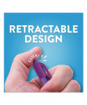 The InkJoy writing system starts quickly without dragging, requires minimal pressure from the hand and delivers crisp, clean lines every time. Triangular shape for comfort along with a retractable tip for convenience. Transparent color-tinted body for a refreshing look.