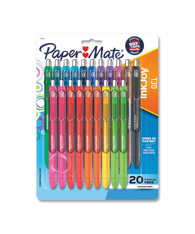Spread joy (not smears) with Paper Mate® InkJoy Gel Pens. With vivid gel ink that dries 3X faster, for reduced smearing, it's like a party on the page where smudges aren't invited. Brilliant colors ensure that your writing will be bright and filled with fun. Fully wrapped in a comfort grip, these gel pens have a smooth style that keeps the joy flowing as fast as your thoughts. Individual ink drying times may vary by color.