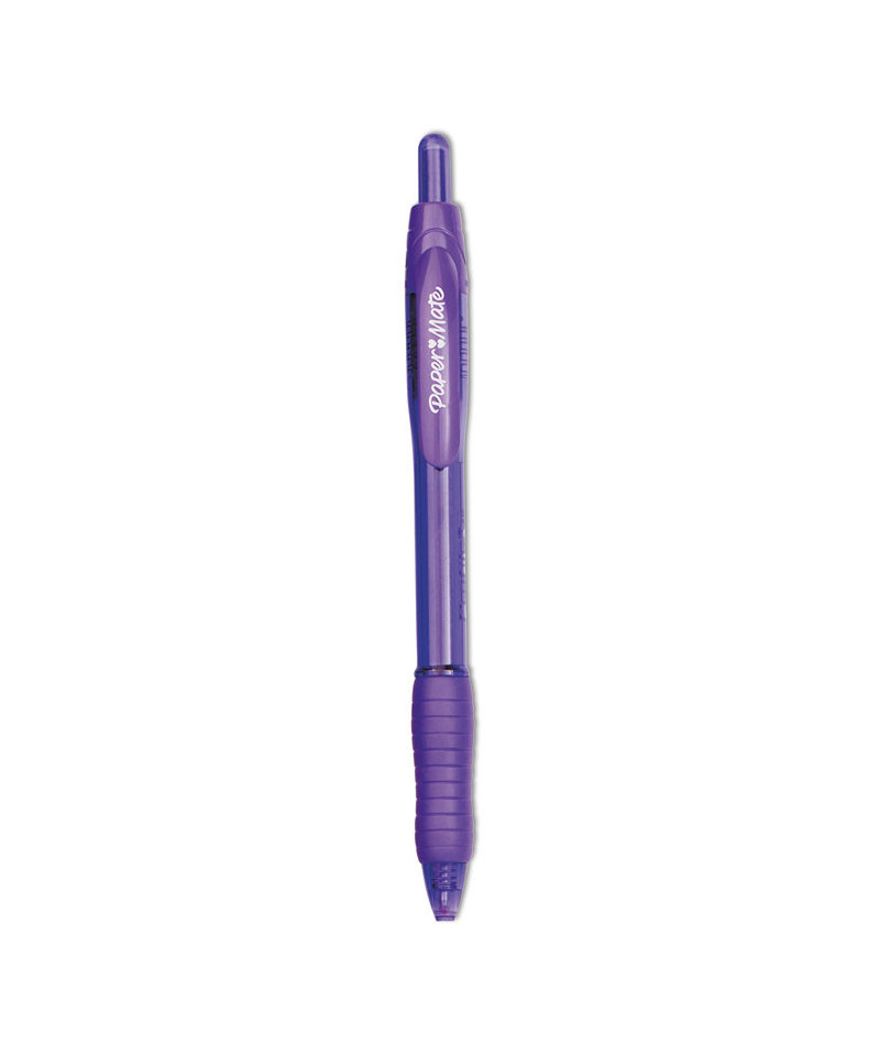 Experience fluid, effortless writing with the Paper Mate® Profile® Retractable Ballpoint Pen. The bold ink dries quickly to help reduce smudges for tidy, clean writing, while the click-advance retractable tip protects pockets and purses. With its smooth-flowing ink and soft contoured grip, this pen keeps you comfortable during extended writing sessions.