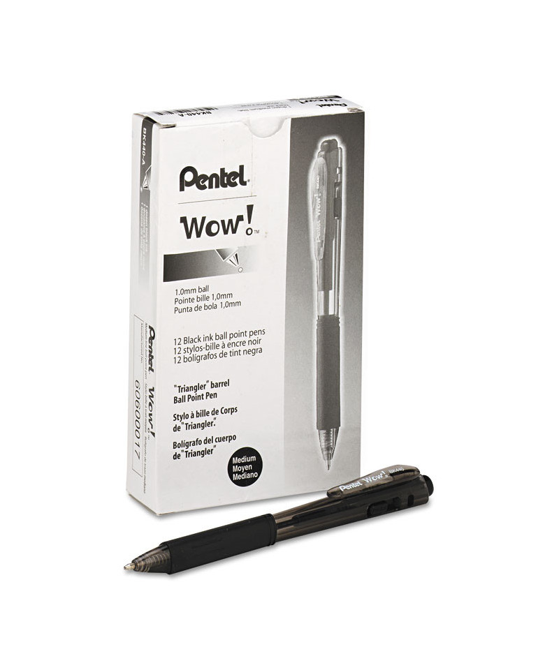 The stylish WOW!™ Retractable Ballpoint Pen offers a distinctive design that stands out in a crowd. Its unique, triangular-shaped barrel comes in a variety of ink-matched translucent colors, and its similarly shaped latex-free Comfort Zone grip makes it easy to hold. To enjoy smooth-writing, vivid ink, simply click the top plunger to advance the tip. Once you've expressed yourself, just press the side button to retract it. After you set it down, its eye-catching, triangular design keeps it from rolling away, so your favorite Pentel® WOW! pen stays close at hand.