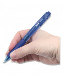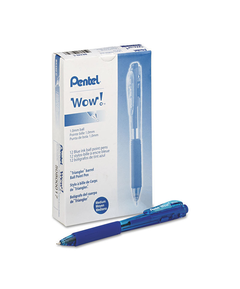The stylish WOW!™ Retractable Ballpoint Pen offers a distinctive design that stands out in a crowd. Its unique, triangular-shaped barrel comes in a variety of ink-matched translucent colors, and its similarly shaped latex-free Comfort Zone grip makes it easy to hold. To enjoy smooth-writing, vivid ink, simply click the top plunger to advance the tip. Once you've expressed yourself, just press the side button to retract it. After you set it down, its eye-catching, triangular design keeps it from rolling away, so your favorite Pentel® WOW! pen stays close at hand.