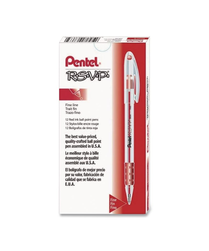 R.S.V.P. Ballpoint Pen, Stick, Fine 0.7 mm, Red Ink, Clear/Red Barrel, Dozen
