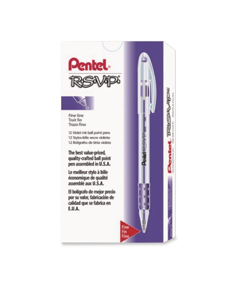 R.S.V.P. Ballpoint Pen, Stick, Fine 0.7 mm, Violet Ink, Clear/Violet Barrel, Dozen