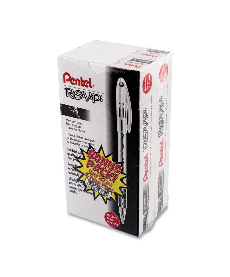 R.S.V.P. Ballpoint Pen Value Pack, Stick, Medium 1 mm, Black Ink, Clear/Black Barrel, 24/Pack