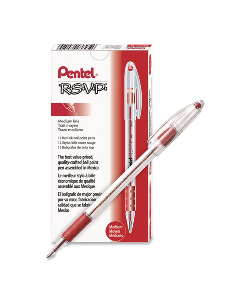 R.S.V.P. Ballpoint Pen, Stick, Medium 1 mm, Red Ink, Clear/Red Barrel, Dozen