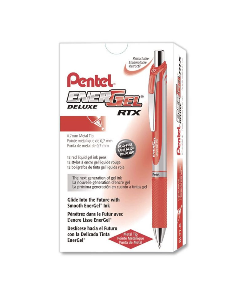 Make your everyday writing tasks more enjoyable with Pentel® EnerGel® RTX Retractable Liquid Gel Pens. High performance ink technology combines the best qualities of liquid and gel inks for a super-smooth writing experience, and its quick-dry qualities make it ideal for left handers—No Smears, No Smudges, No Globs. Its sleek, stylish barrel with stainless steel accents provides a distinctive, professional appearance, while its cushioned, latex-free grip delivers extra comfort and greater control. Refillable with any EnerGel® ink refill.