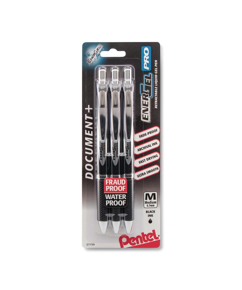 EnerGel PRO Hybrid Gel Pen, Retractable, Medium 0.7 mm, Black Ink, Black Barrel, 3/Pack