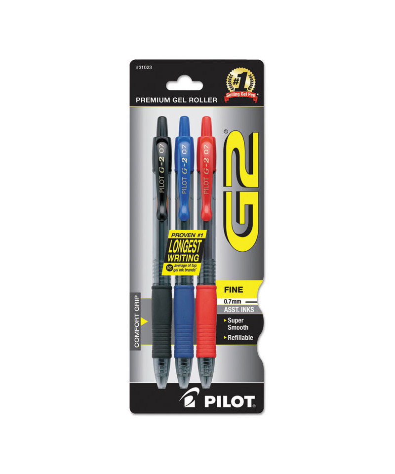 G2 Premium Gel Pen, Retractable, Fine 0.7 mm, Assorted Ink and Barrel Colors, 3/Pack