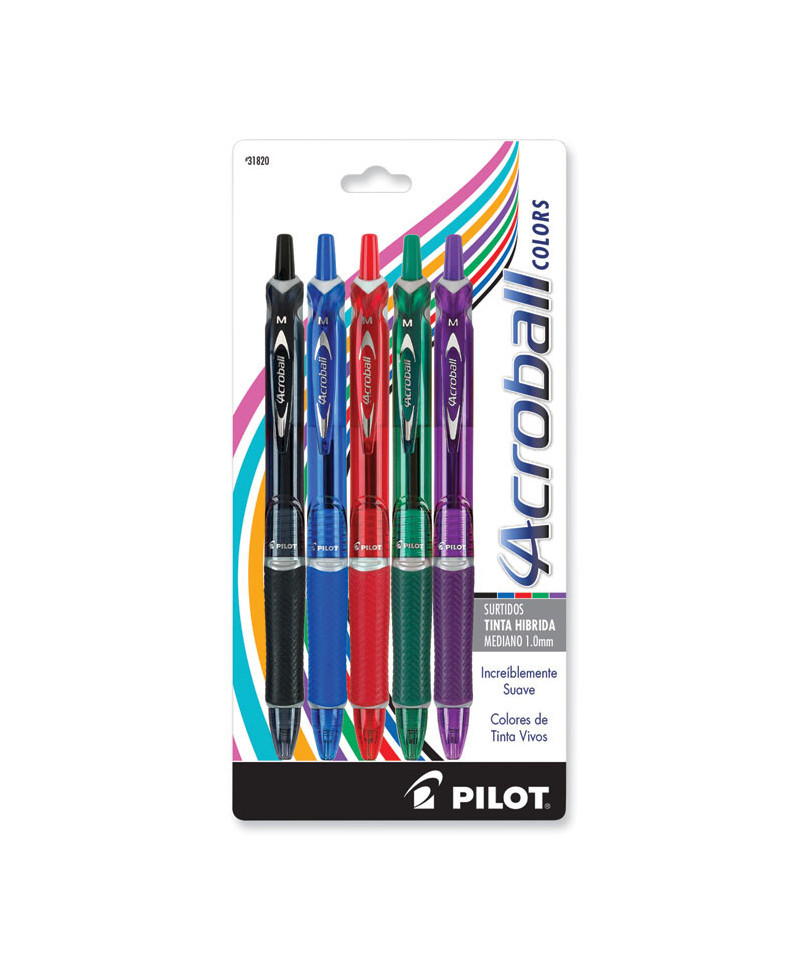 Acroball Colors Advanced Ink Hybrid Gel Pen, Retractable, Medium 1 mm, Assorted Ink and Barrel Colors, 5/Pack