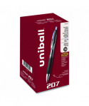 Stock your office, home or classroom with 207 Retractable Gel Pens from uni-ball with a stainless steel tip that resists bending and breaking. Even-flowing, pigment-based gel ink delivers a smooth writing experience for intense, vibrant lines, ensuring that every mark is brilliantly communicated. Use these retractable gel pens for everyday writing tasks, check signing and all of your important signatures, trusting its quick-drying uni Super Ink. Innovative uni Super Ink technology effectively entraps the gel ink into the paper, producing fraud, fade and water-resistant documents that resist check washing or bleaching. A textured grip offers greater comfort and control as you continue writing, while a translucent ink window indicates the level of gel ink remaining, so you don't run out unexpectedly. The sleek design of the 207 with modern metal accents gives the retractable gel pen a stylish touch.
