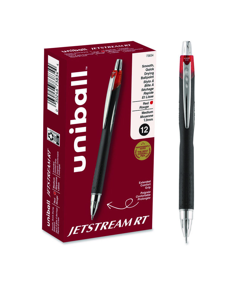 Enjoy your daily writing experience with JETSTREAM RT Retractable Ballpoint Pens from uni-ball. Great pen for everyday writing, these pens contain unique hybrid ink that delivers the smoothness and vibrant color of a gel pen with the quick-drying properties of a traditional ballpoint. JETSTREAM RT pens dry as quickly as you write, which prevents smudging and smearing to produce neat-looking documents. uni Super Ink technology settles ink particles deep into the paper for protection against water, fading and fraud. Contemporary stainless steel accents offer a stylish appeal while the embossed grip helps maintain precision and control.