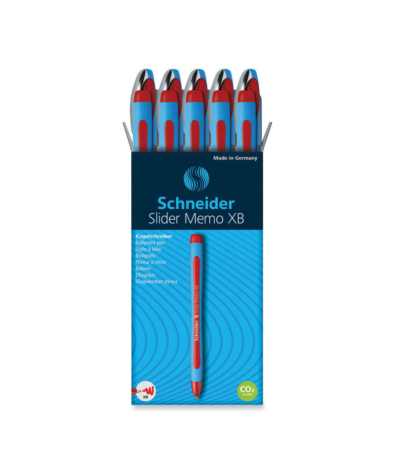 The Slider® Memo XB ballpoint pen features Viscoglide® ink technology for smooth-glide writing. An Extra-Broad (XB) stainless steel tip enhances ink-flow, while laying down extra-bold, 1.4 mm lines. Quick-drying ink resists smudging, even when highlighted. Rubberized, ergonomic barrel is shaped to reduce hand fatigue during longer writing sessions. Cap with metal clip fits neatly on the end of the barrel. Produced CO2 neutrally.