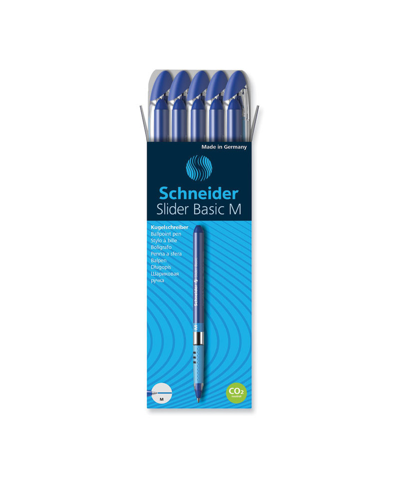 The Slider® Basic ballpoint pen features Viscoglide® ink technology for an extraordinarily smooth writing experience and a wear-resistant stainless steel tip to enhance ink flow, while preventing the possibility of tip-grind when moving along the page. Ink dries quickly and resists smudging, even when highlighted. Rubberized grip delivers a more secure hold and helps reduce hand fatigue during longer writing sessions. Transparent cap with clip and handy ink-color indicator fits neatly on the end of the barrel. Produced CO2 neutrally.