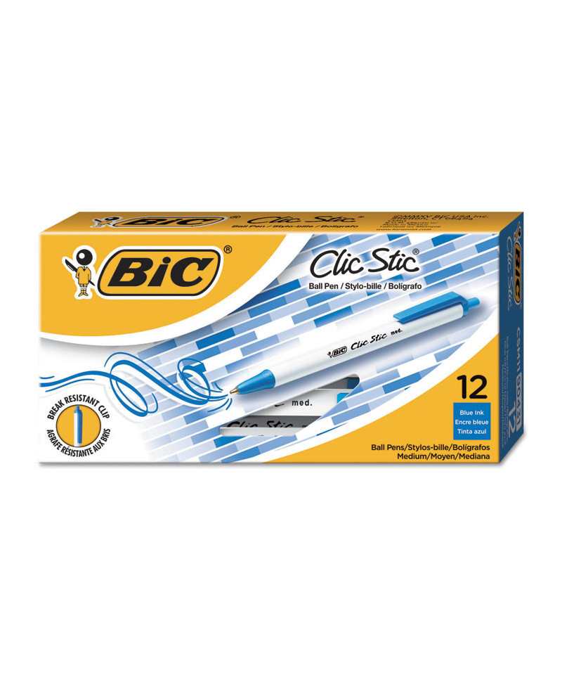 A BIC classic, the Clic Stic Ball Pen is convenient and affordable. This retractable ballpoint pen features a comfortable round barrel design ideal for all-day use. Its versatile medium point makes this pen a great choice for everything from list-making to note-taking. The break-resistant pocket clip makes it easy to bring the Clic Stic Ball Pen with you, wherever you go!
