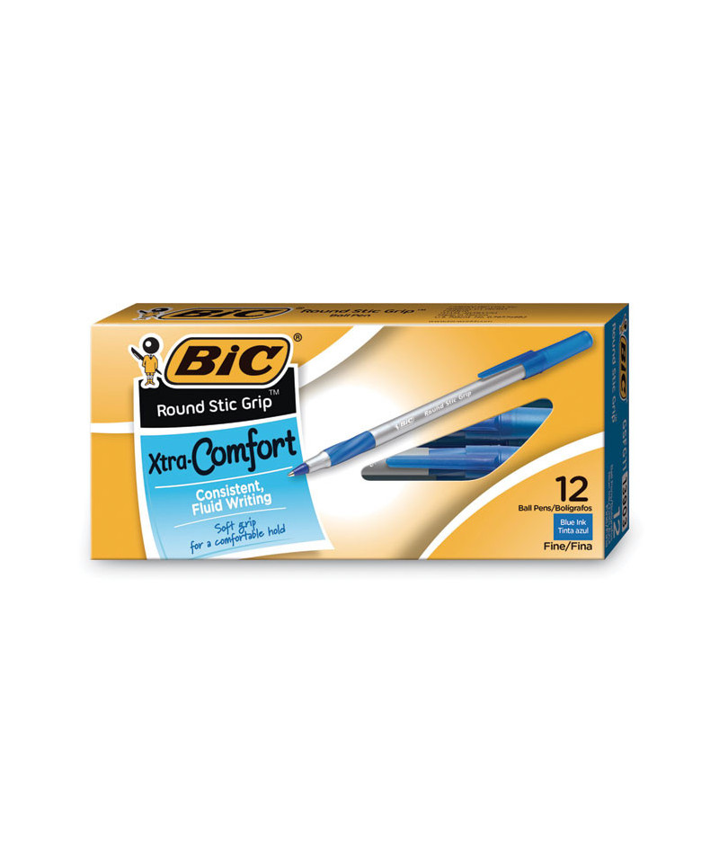 Writing the first time, every time, BIC® Round Stic Grip Xtra Comfort Ballpoint Pens combine exceptional performance with excellent longevity, making them a superb choice for everyday notetaking, journaling, schoolwork and more. Easy Glide Technology delivers smooth writing with a crisp, vivid result, while tungsten-carbide balls minimize the potential for skipping and blotting. Translucent barrel makes it easy to see how much ink remains; and for Xtra Comfort, each pen features a snug, comfortable grip.