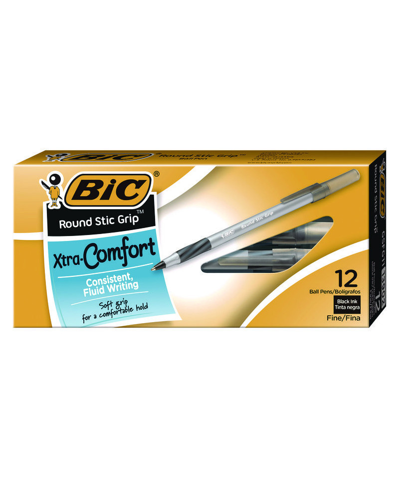 Writing the first time, every time, BIC® Round Stic Grip Xtra Comfort Ballpoint Pens combine exceptional performance with excellent longevity, making them a superb choice for everyday notetaking, journaling, schoolwork and more. Easy Glide Technology delivers smooth writing with a crisp, vivid result, while tungsten-carbide balls minimize the potential for skipping and blotting. Translucent barrel makes it easy to see how much ink remains; and for Xtra Comfort, each pen features a snug, comfortable grip.