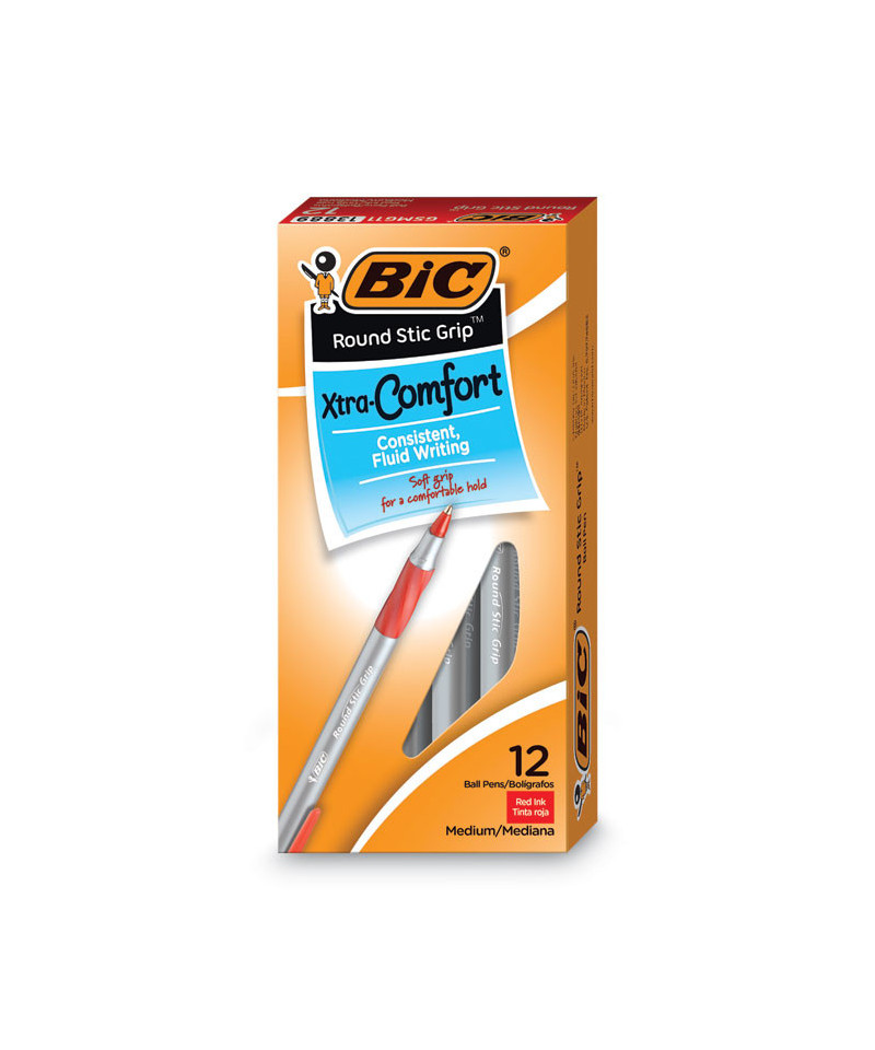 Writing the first time, every time, BIC® Round Stic Grip Xtra Comfort Ballpoint Pens combine exceptional performance with excellent longevity, making them a superb choice for everyday notetaking, journaling, schoolwork and more. Easy Glide Technology delivers smooth writing with a crisp, vivid result, while tungsten-carbide balls minimize the potential for skipping and blotting. Translucent barrel makes it easy to see how much ink remains; and for Xtra Comfort, each pen features a snug, comfortable grip.