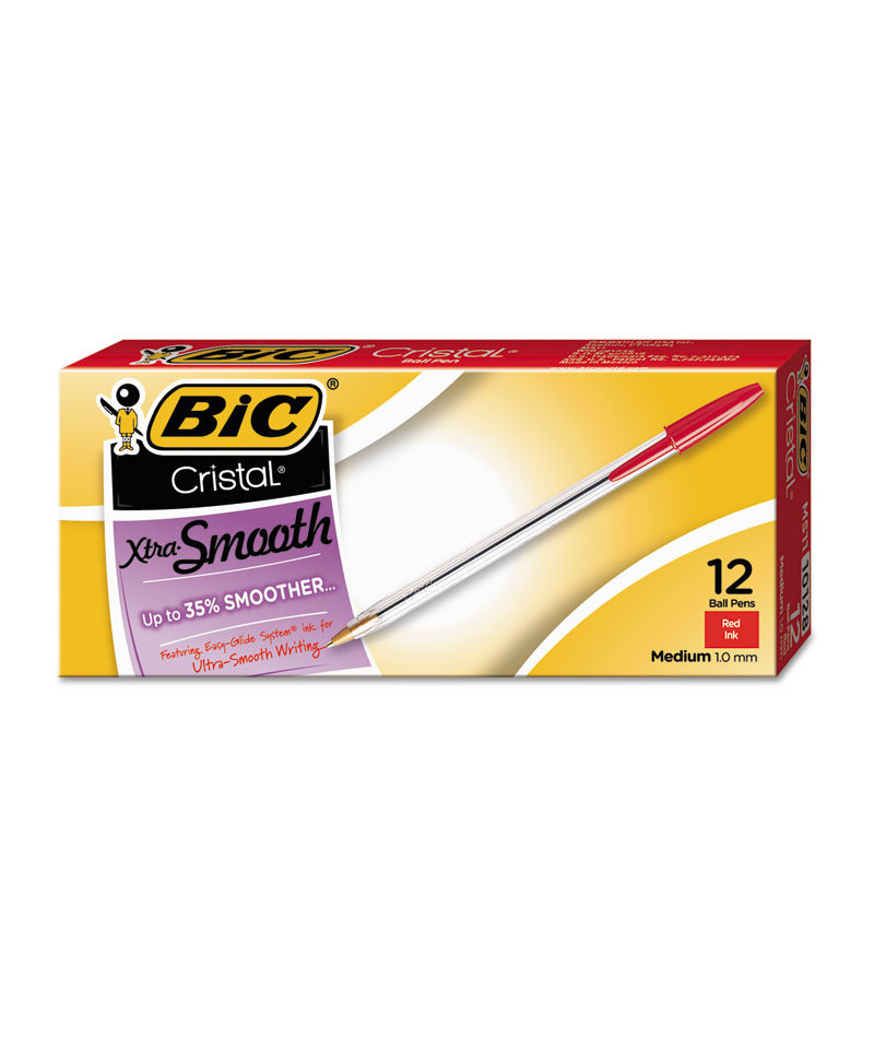 The Cristal® Xtra Smooth Ball Pen is The Pen America Grew Up With®. It has proven reliability, writing up to 35% smoother than BIC®'s traditional ballpoint ink. It features a roll-proof hexagonal-shaped barrel so it won't roll off surfaces.