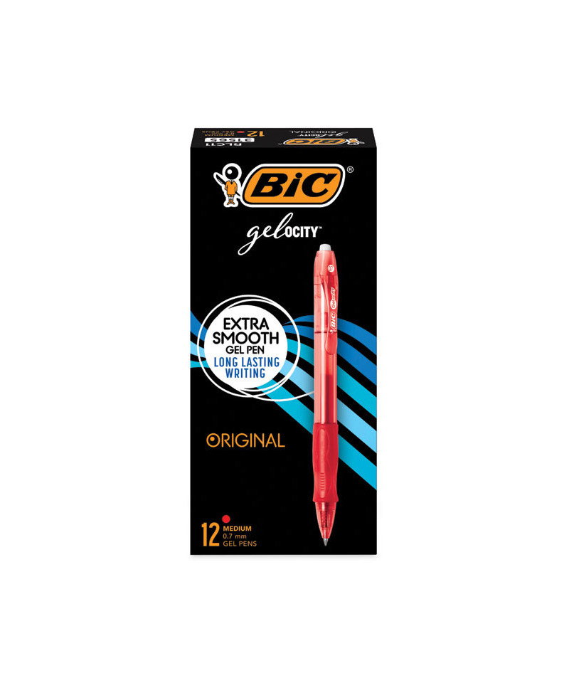 Enjoy a smooth writing experience with BIC Gel-ocity Original Retractable Gel Pens. Ideal for note-taking, annotating, and a variety of other writing tasks, these pens feature a contoured grip for comfort and control. The pen's fashionable translucent barrel shows the remaining ink supply, so you know when you are running out of ink. The 0.7 mm medium point makes vivid lines, while the convenient retractable design allows you to extend and retract the tip with a simple click.