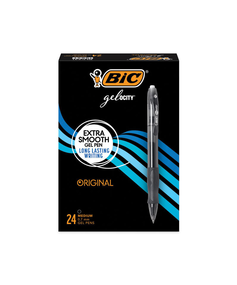 Enjoy a smooth writing experience with BIC Gel-ocity Original Retractable Gel Pens. Ideal for note-taking, annotating, and a variety of other writing tasks, these pens feature a contoured grip for comfort and control. The pen's fashionable translucent barrel shows the remaining ink supply, so you know when you are running out of ink. The 0.7 mm medium point makes vivid lines, while the convenient retractable design allows you to extend and retract the tip with a simple click.