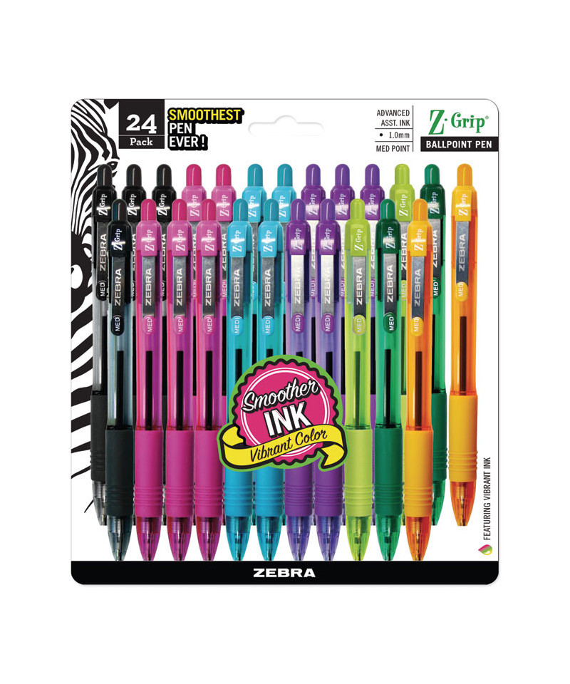 Z-Grip Ballpoint Pen, Retractable, Medium 1 mm, Assorted Artistic Ink and Barrel Colors, 24/Pack