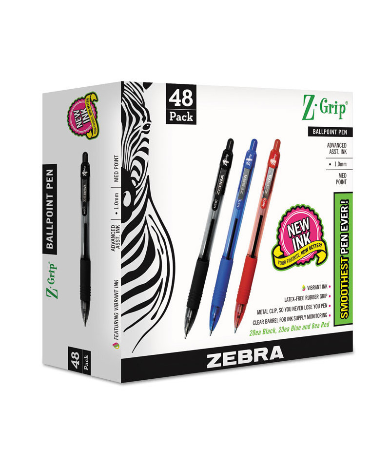 Z-Grip Ballpoint Pen, Retractable, Medium 1 mm, Assorted Ink and Barrel Colors, 48/Pack