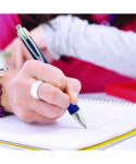 A wide barrel and a soft, contoured, rubber grip provide outstanding comfort and control. Powered by Zebra's innovative Rapid Dry Ink technology, its acid-free, archival-quality gel ink ensures a pleasurable writing experience and a long life for your documents. Each pen's barrel and grip match its vividly colored ink, while silver-coated details add a touch of sophistication to the overall design.