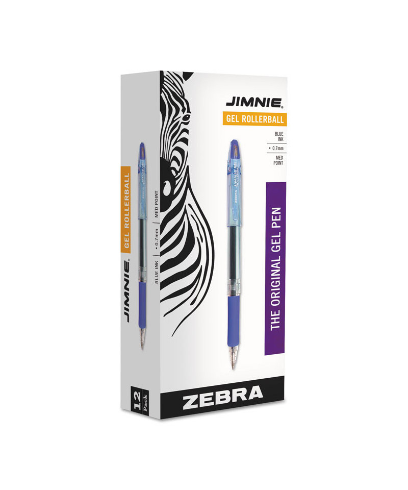 Jimnie Gel Pen, Stick, Medium 0.7 mm, Blue Ink, Clear/Blue Barrel, 12/Pack