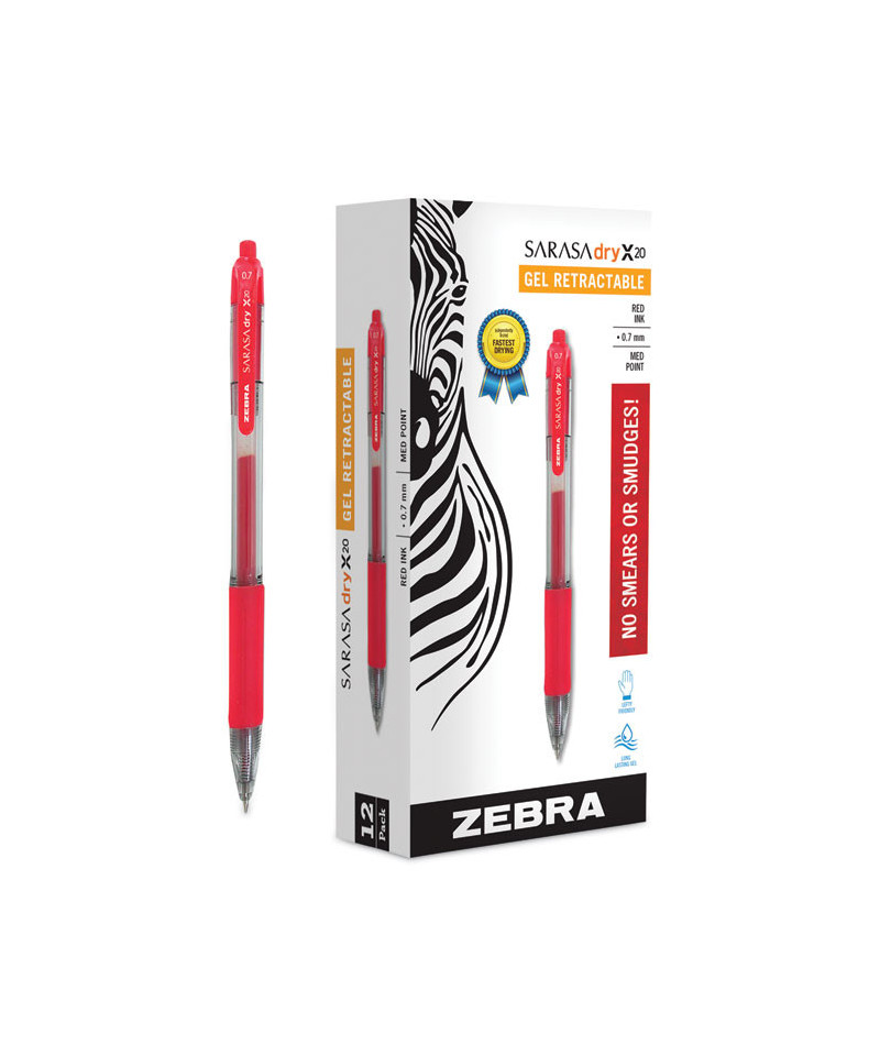 Enjoy a perfectly harmonized writing experience with the Sarasa X20 Premium Gel Ink Pens from Zebra! The innovative Rapid Dry Ink Technology not only allows a balanced continuous ink laydown, but is also proven to be the fastest drying gel ink available as well. This is an ideal pen for the left handed, as it eliminates smudging and smearing in seconds. Its soft rubberized grip is latex-free and it allows for a precise, yet comfortable and firm grip while writing on any surface. This premium ink gel pen creates a perfect harmony between smooth gel ink, fastest drying time, remarkably comfortable grip, retractable barrel and convenient pen clip for a trusted, continuously reliable writing experience. The Zebra Sarasa X20 Gel Pen is a perfect companion for any notebook, journal, calendar planner, teachers planning book, greeting cards and more. Pair this pen with other great writing instruments from Zebra.
