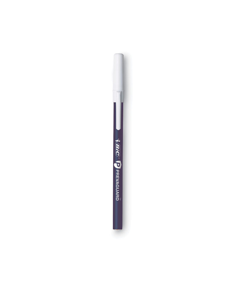 BIC Prevaguard Round Stic Ballpoint Pen contains an antimicrobial agent incorporated into the plastic that protects the pen itself by suppressing the growth of bacteria, algae, fungus, and mildew. These products protect the pens themselves and do not protect users or others from disease-causing bacteria, viruses, or germs. The antimicrobial agent should last the lifetime of the pen's plastic unless the plastic is destroyed. Along with the antimicrobial agent on the pen, the Round Stic Pen is the BIC product you know and love. This pen also features a medium 1 mm ballpoint that delivers smooth writing to create vivid, highly visible lines ideal for note-taking, drafting, doodling, and other writing activities. PrevaGuard is a registered trademark of Koozie Group.