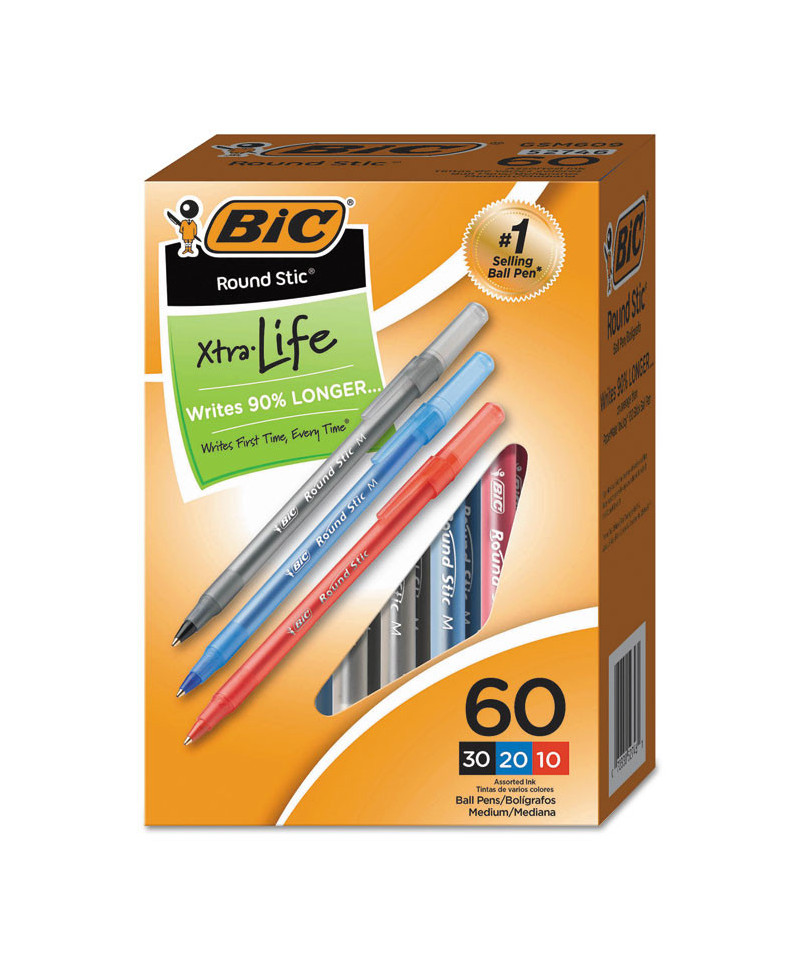 Round Stic™ Xtra Precision & Xtra Life Ballpoint Pens are dependable favorites that offer both excellent performance and a great value. Always laying down vivid lines, they're ideal for a variety of writing applications, from taking notes to doodling. Their flexible round barrels rest comfortably in your hand, while their translucent design keeps the remaining ink supply visible, so you'll always know when you're running low.