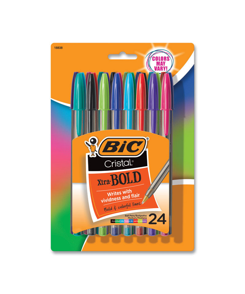 Cristal Xtra Bold Ballpoint Pen, Stick, Bold 1.6 mm, Randomly Assorted Ink and Barrel Colors, 24/Pack